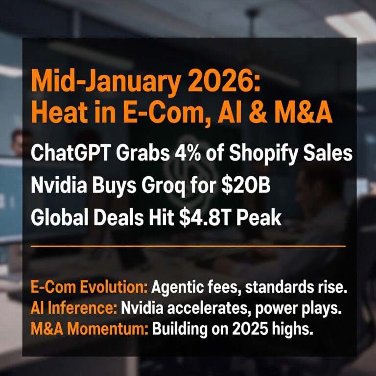 Midway through January, the e-commerce, AI, and M&A sectors are charging ahead with pivotal partnerships, regulatory shifts, and billion-dollar bets that redefine digital retail and innovation. At Xyra Group, we’re channeling these trends into targeted acquisitions of AI-enhanced e-commerce businesses and consumer brands, emphasizing agentic tools, resilient logistics, and scalable platforms. This roundup covers the most impactful developments, offering insights for founders and investors navigating this dynamic landscape.